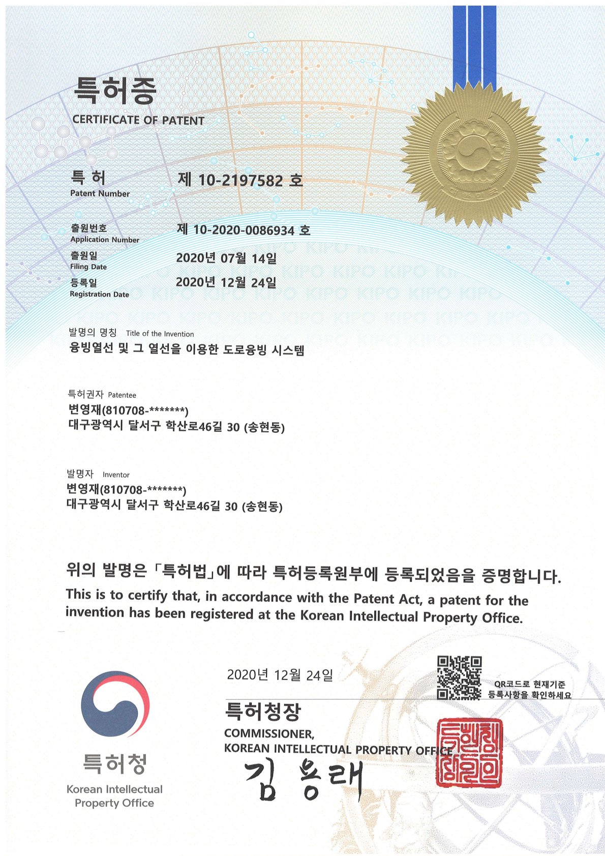 융빙열선 및 그 열선을 이용한 도로융빙 시스템 제10-2197582호