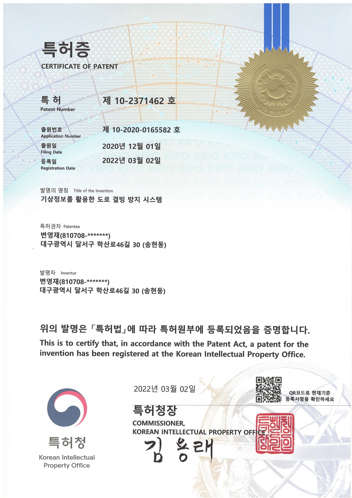 기상정보를 활용한 도로 결빙 방지 시스템 제10-2371462호
