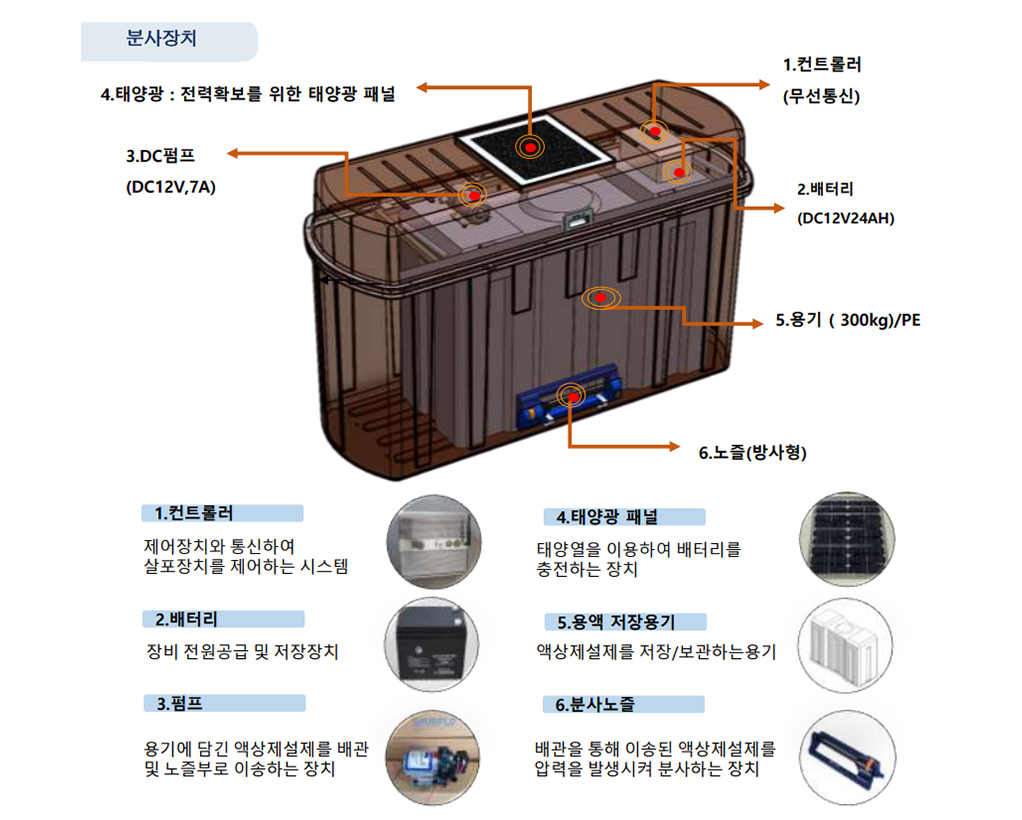 계절에 따라 용액을 변경해 4계절 활용이 가능하며, 겨울에는 제설제, 봄·여름·가을에는 미세먼지 응집제를 사용해 적용 범위를 넓힐 수 있습니다.4
